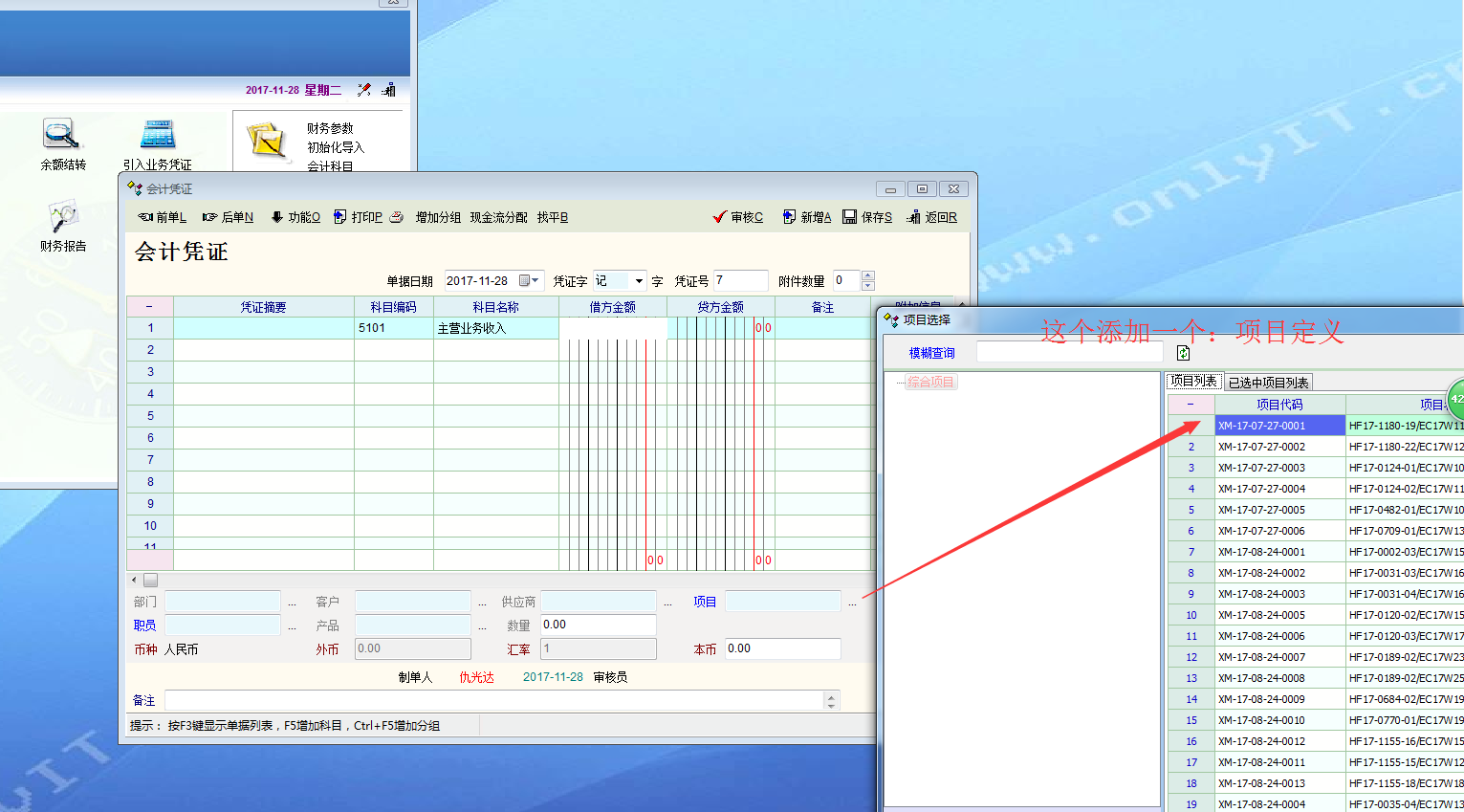 1.项目选择中添加项目定义,类似于科目选择中有个科目定义,这样不用返回到基础资料-项目定义里去添加,再返回到凭证制单