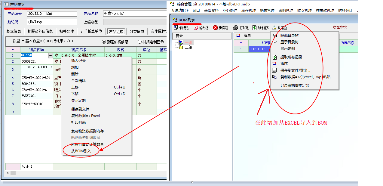 系统目前是产品结构从BOM引入,我说的是从Excel文件导入到BOM中。