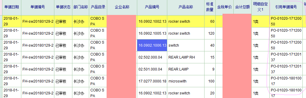 图一是销售开票引用明细上显示的FH-sw20180129-2对应相关单据号情况  可以看到均为PO-01020-17120050