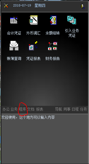 以小秘书模式打开软件,显示的第一画面时显示的是办公界面:有名片管理 工作日志等,而我把会计财务一类的选项弄到程序界面了,可不可以在打开软件时直接显示程序这个界面??