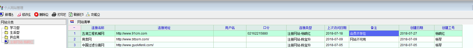 如附件所示  现在的情况 是连接类型第一行是注册网站-杨晓红,创建人也是杨晓红,如果第二行的人杨琴点开我的网站,保存后连接类型和创建人就都变成杨琴了