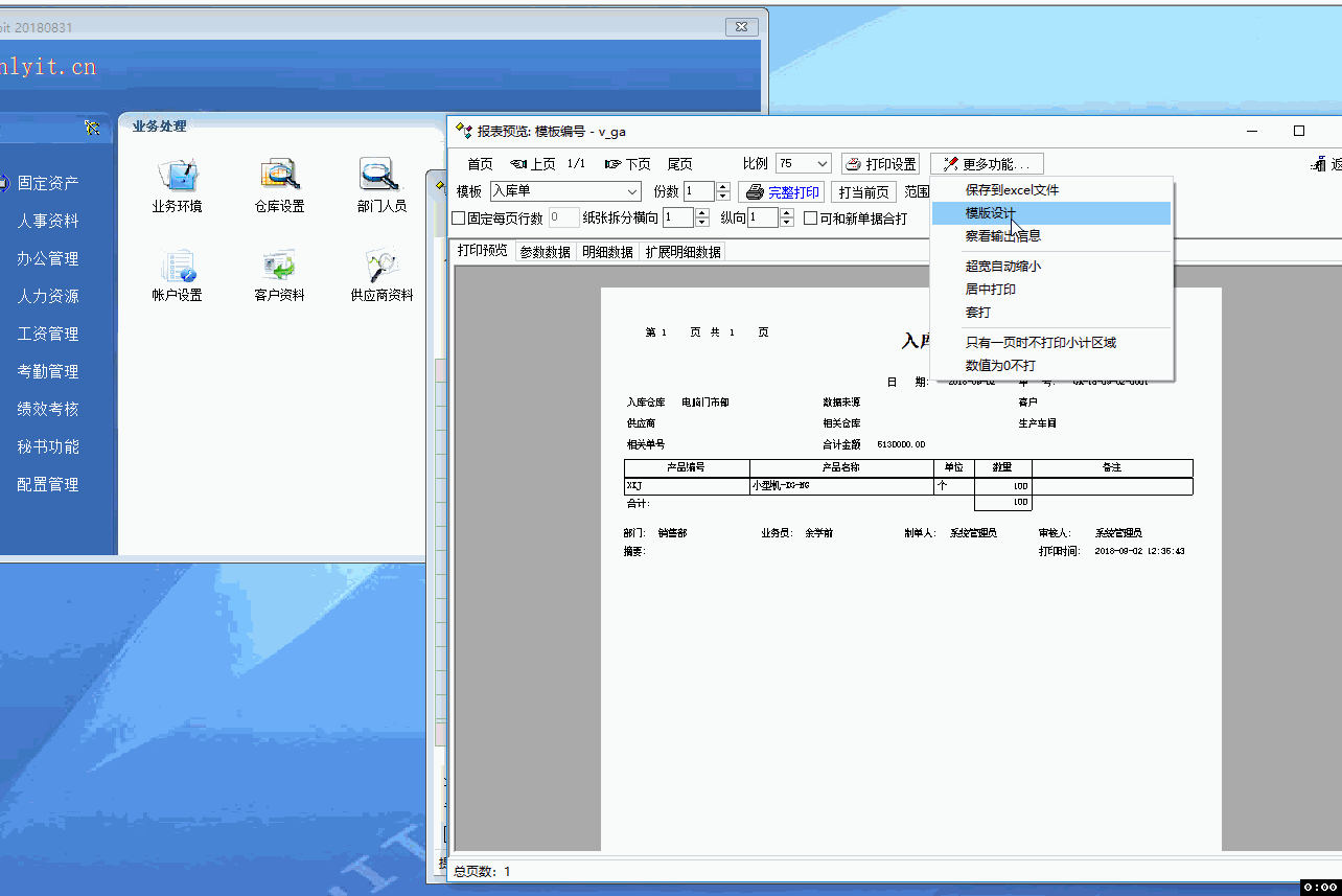2、任一单据,以入库单为测试