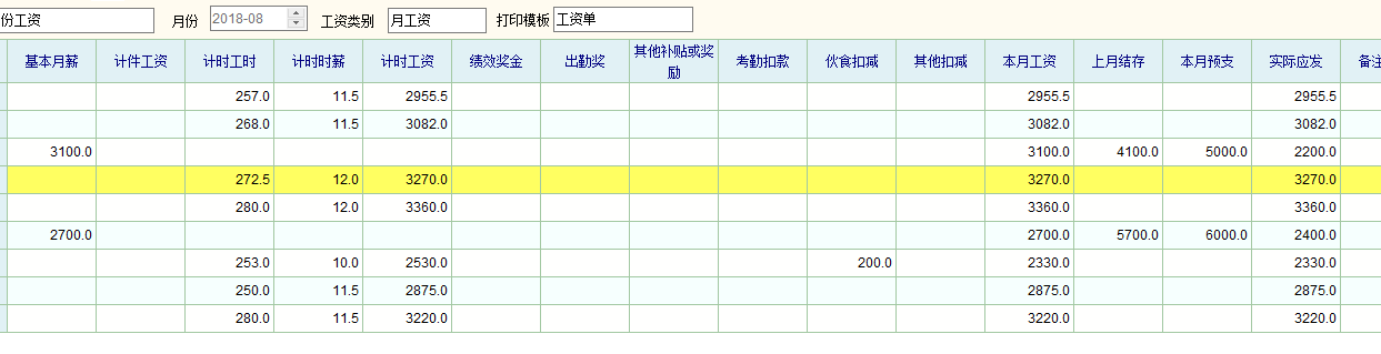 小企业中,许多时候员工工资每月结算,但并不一定全部结清发放。好多时候是几个月(农村地区经常是逢年过节)才发放一次。在发放期间,有时候会支取一部分,有时候一个月会支取好多次,而到月底了,工资结算而不领取就累加起来。就如图所示的工资单一样。在员工资料中添加存取记录,就可以快速查询该员工的工资支存情况,随时结算结清工资。就相当于客户或供应商的对账单一样详细明了。