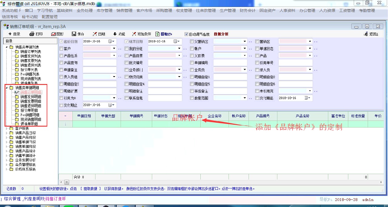 因业务需要,希望老师们帮忙添加《品牌帐户》的以下报表定制,1、在销售报表中的销售类单据明细中添加《品牌帐户》的定制,2、库存报表中的库存单据明细中添加《品牌帐户》的定制。谢谢老师,辛苦了!