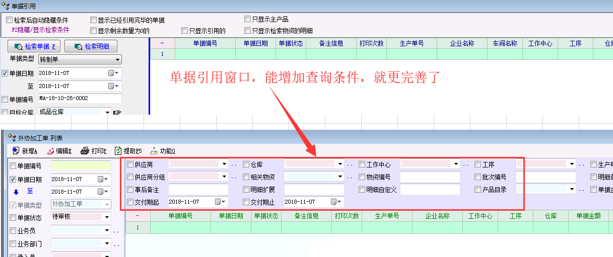 2、如果能在引用窗口上,增加查询条件,会更方便用户操作。