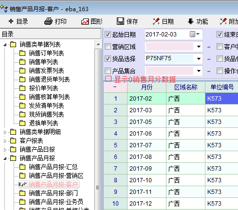 建议在报表的检索条件中添加是否显示0销售月份数据的勾选项。