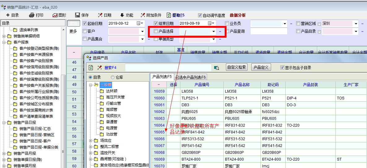 所有报表,一点“产品选择”输入产品系统就卡死,这个报表叫人怎么用呀