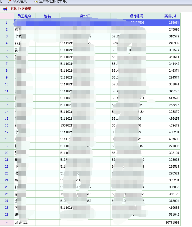 生成代收文件时,实发数小数点,变相*100,与原表单中数据不匹配